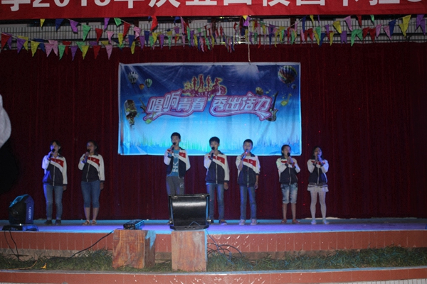 五四运动已经持续了九十多年的时间,五四精神值得团员们学习,随着李校长的讲话,五.四活动开始。只听见掌声和欢呼声接连不断,只听见那气魄的声音,只听见音乐在耳畔回荡。今年的五四好像比昨年的精彩多了,还有比赛,还有舞蹈,凡是该有的东西,没有一样没有。会场布置十分完美,红色的大幕布挂着"唱响青春,秀出活力。"几个字,再加上灯光的配合,就更美了,还有挂在旁边的气球,就找不出不美之处。