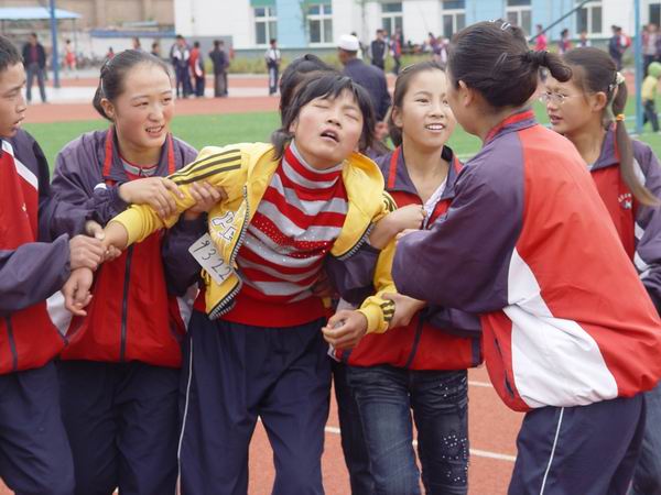毕竟参加比赛的人只有少数,大多数的人只能够作为服务者投入到比赛中,他们守侯在终点处,搀扶每一位通过终点的运动员。因为参与就是快乐,不管结果如何,我们永远在一起。