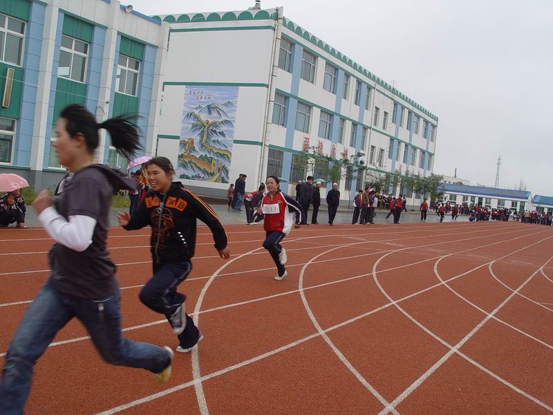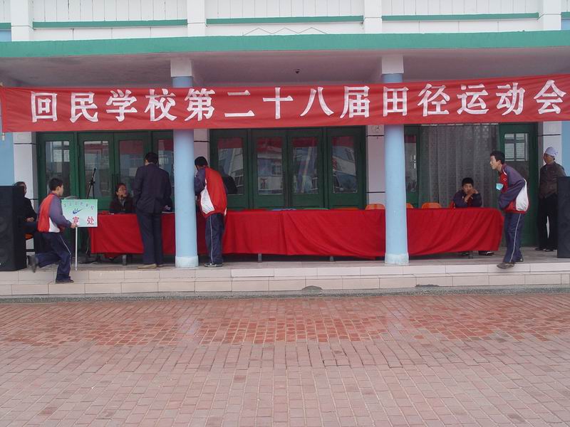 在蒙蒙细雨的笼罩下,回民学校第 28 届田径运动会开始了。田径运动会学校每年召开一次,每当这时候同学们都很高兴。比赛一开始同学们就去比赛了,而有的同学则去写通讯稿了。