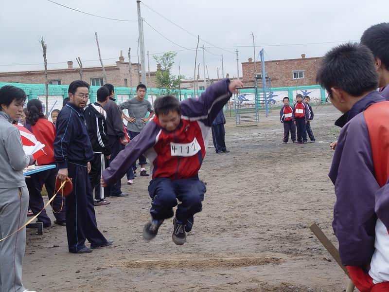 他是一位五年级的同学,正在参加跳远比赛。比赛开始了,他踏着坚实的脚步,健步如飞的向这里冲来,然后凌空而起,从他跳的高度就能看出他一定跳的很远。老师和同学们都在鼓励他,为他加油,为他呐喊。
