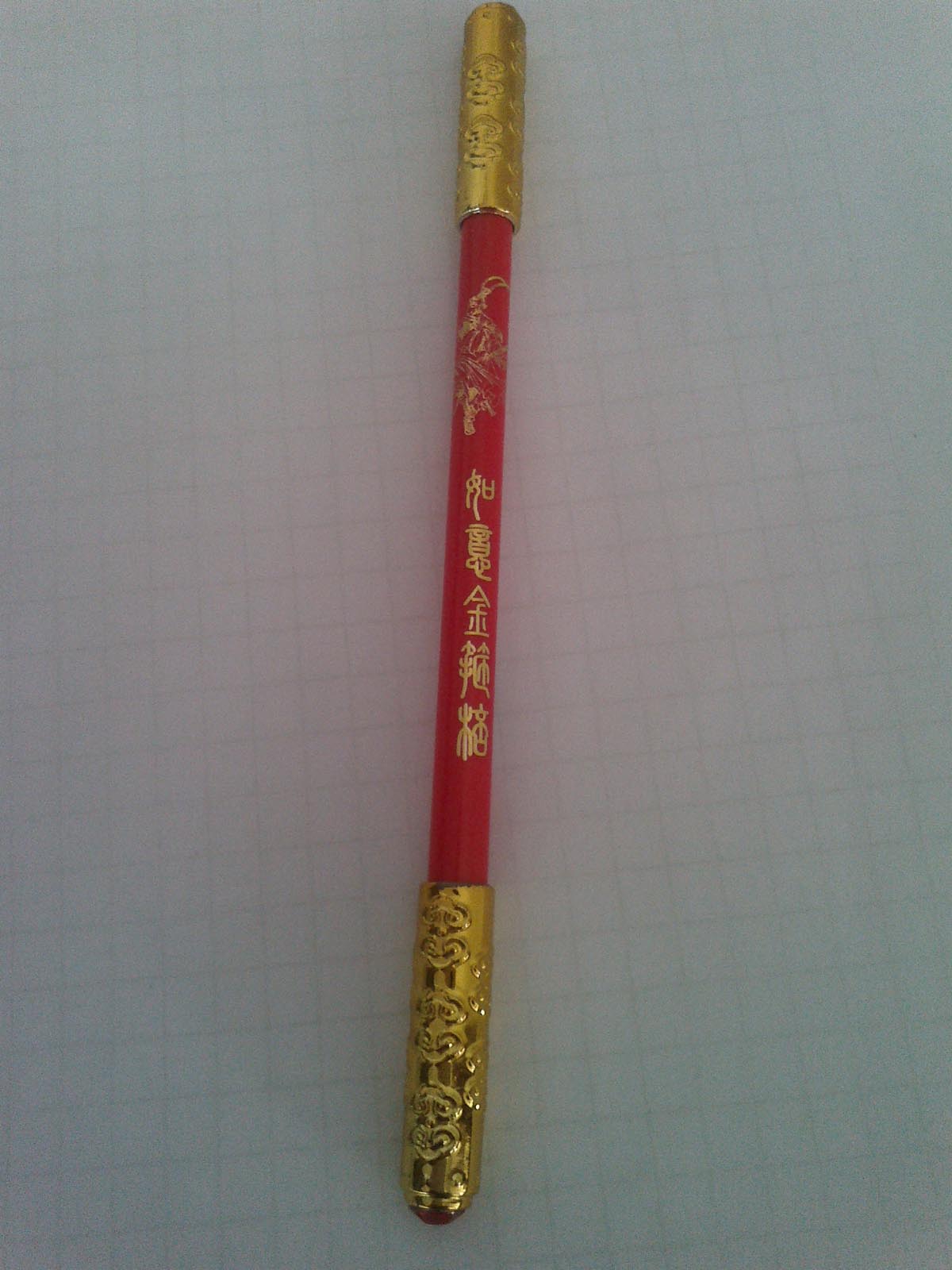 "金箍棒"的两头都有笔,都能写字。这支笔,我写字的时候用的少,主要是用于玩儿。一个同学不听话,我拿出金箍棒,大喊一声"俺老孙来也。"脑袋上一棒,管叫他魂飞魄散。