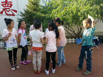 我对她说:"太没意思了,我们玩会别的吧!"她忽然灵机一动说:"我们来玩套圈吧。"她二话没说,把红地毯铺开,上面摆着玩具、头饰、剪刀等等。她拿了一个发夹当作套圈用的东西,递给了我。我随意一扔,套中了一个可爱的娃娃,她看了看我,也扔了一次,结果什么也没套中。过了一会儿,我套中了好多东西,而她什么也没有,我得意地开怀大笑,而她也越来越有经验,也逐渐比我套的多。就这样,我们的感情更好了。