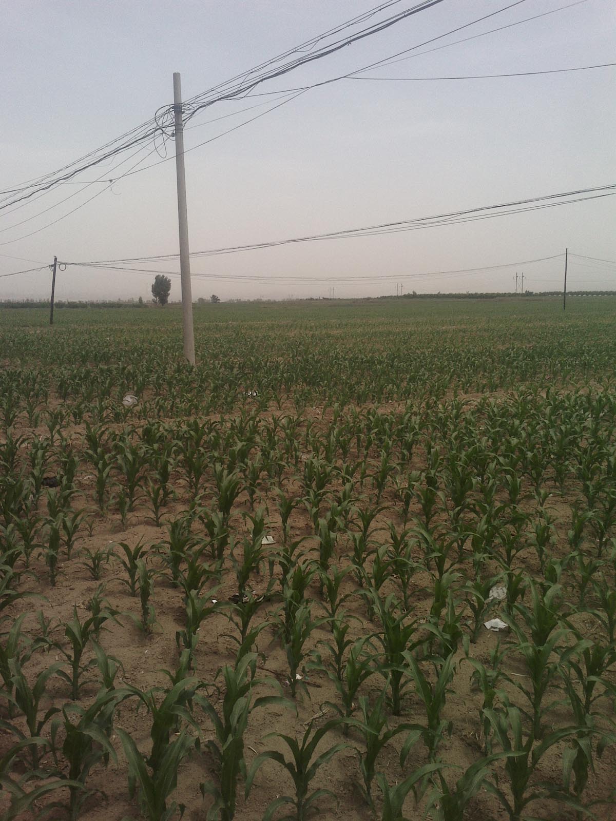刚走出村外是一条笔直的马路,马路上的车不多,但车速都开得很快,你过马路可得小心点儿。紧挨公路的是大片大片的玉米,现在玉米已经很高了,大约有50厘米吧,每株玉米都有七八片叶子,叶子微微向下弯曲着。这个时候的玉米长得是最快的时候,几乎每天都有变化。如果再浇上水,施上肥,长得就更快了。