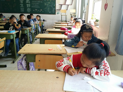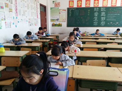 在四年级第一场考试,众考生都使出浑身的才智去答题。第一场考试是语文,我想其他考生和我一样,都担心时间不够用!考试开始了,班里十分宁静。不到一会儿,这种宁静被打破了:有的同学与前后桌窃窃私语;有的同学把头低了下去,原来正在书桌里悄悄抄书;有的同学在啃笔头;有的同学两个手腕一对齐,把头放了上去,在思考问题;有的同学则不同,埋头思考题;还有的同学左顾右盼,把别人的答案写在自己的试卷上。铃铃铃……收卷时间到了,可有的同学作文只写了几个字。在短暂的休息时,同学们东奔西去问别人的答案。还有的在走廊里玩耍打闹。只有一两个同学在班里复习。 伴随着吹哨声同学们陆陆续续回到班里。考卷发下来了,考场又是一片寂静,有的同学跑上讲台,向老师问问题。还有的同学在答完卷后不老实极了,来回扭头和前后桌对题。有的悄悄地翻开笔记本查看公式。