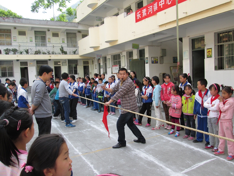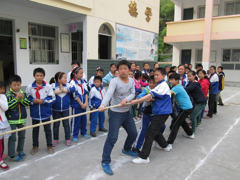 "预备"裁判员大喊了一声,双方的队员都立马抓起了麻绳。"嘟"哨声响起了,比赛正式开始,只见双方的队员都互不相让,我们小队的"大力士"李芝瑞、张学波、巩固财都拼命地把麻绳中间的红布往我们这边拉,几位"大力士"的身子都马上要贴进地面了,他们咬紧牙关,脸涨得通红。看见旁边的几位小同学,嗓子都快喊哑了,在为我们喊加油。但双方也毫不示弱,也在拼命的拉。这绳子一会儿向他们那边斜,一会儿又向我们这边斜,经过我们小队坚持不懈的努力,终于胜利了。