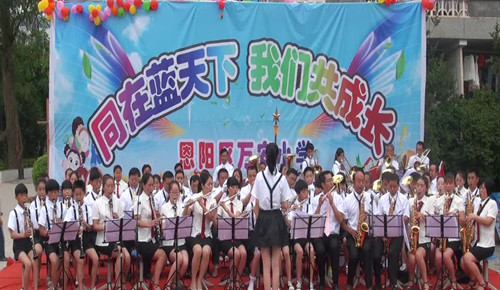 整台演出历史两个小时,表演结束了,同学们还余兴未尽,同学们又和着喇叭里传出的歌声唱啊跳啊,个个都沉浸在欢乐的气氛中,丝毫不觉得疲惫。