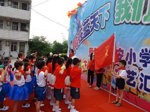 九点整,文艺汇演开始了,师生乐团的演奏《我们走在大路上》、《茉莉花》、《学习雷锋好榜样》拉开了文艺汇演的序幕,他们悠扬的乐音赢得了观众们的雷鸣般的掌声。接着是我们五年级表演的扇子舞《新中国,您好!》,演员们伴着优美的音乐,翩翩起舞,她们时而颔首低眉,时而跳跃激舞,以轻盈的舞姿表达对新中国的美好祝愿。幼儿园小朋友带来的舞蹈《爱我你就抱抱我》用稚嫩的童音表达了留守儿童的心声。三年级献上的《环保时装秀》让我们大开眼界,精彩的表演赢得了雷鸣般的掌声。国学经典诵读让我们感受到新中国传统文化的博大精深,合唱队同学的优美歌声让我们仿佛身临其境……台上歌声不断,台下掌声连连,这个校园都洋溢着欢乐的气氛。