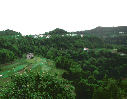 就在我陶醉于这仙境般的绿野之中时,竹林里一声辽远的鸡啼,将我拉回现实,我加快了脚步走向那竹树环抱的家园。