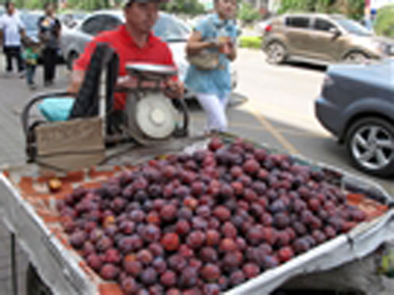 夏天,知了叫了,家乡的李子成熟了,城里的大街小巷都是卖的李子,都是些老奶奶,老爷爷在卖,每个人都想尝尝鲜,都去水果摊上买了李子。