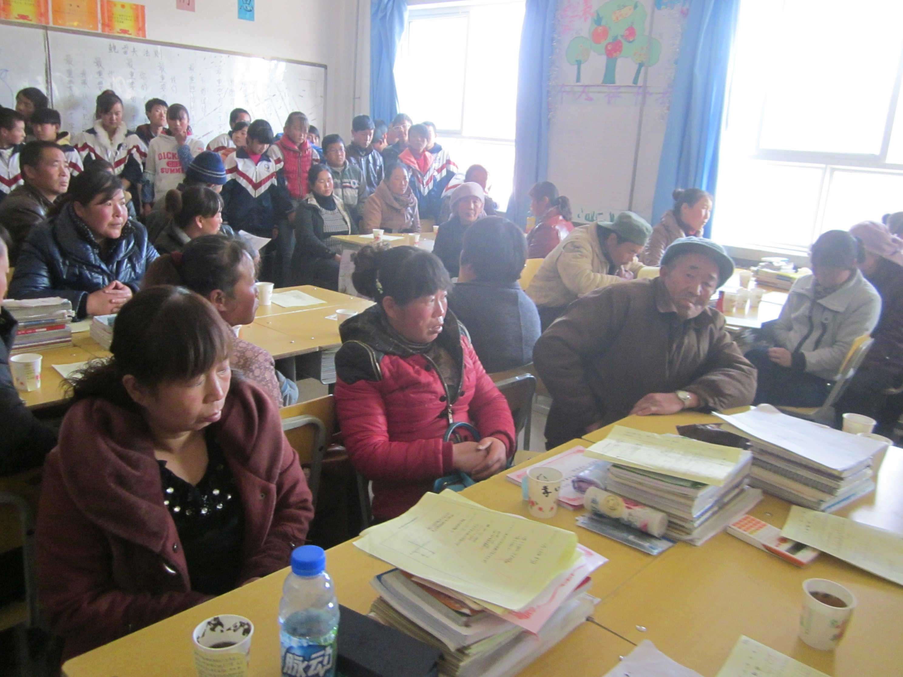 大会开完之后,由同学带领家长到各自的教室开会小会。白老师带领家长核对完学籍信息便对我们班同学的成绩进行说明 ,当读到我的时候我的心怦怦跳个不停,或许是心中的喜悦吧,可是老师的话却让我失望,我明明进步了五名,妈妈安慰我说:"老师的意思是让你更加努力学习。"我这才平静了许多。我是平静但王飞飞却哭了,或许是因为他妈妈说他是数学课代表数学没考及格,伤心的哭了吧。