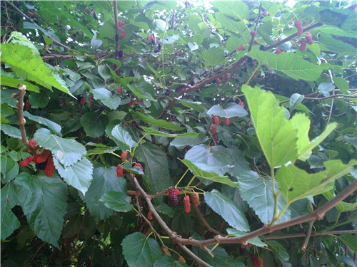 昨天放学路上,我看到路旁有许多的桑树,我对妈妈说:"听说桑树结的果实很好吃,我们去摘点吧!"妈妈点点头。
