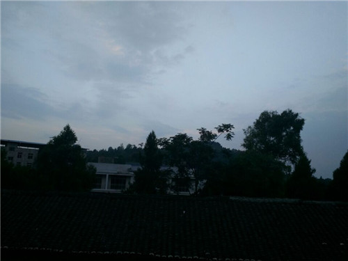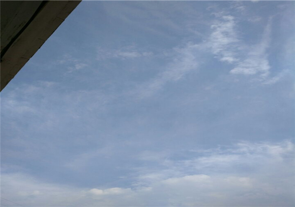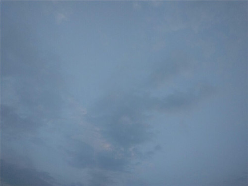 傍晚,太阳已经快落山了,无意间天空已不再是那种淡淡的蓝色了,而是碧蓝碧蓝的。天空中只剩下几朵白云在飘荡。