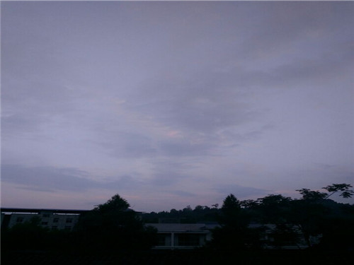 不一会儿,白云好像也被渲染了,成了天空的"同伙",颜色也变得与海水一般湛蓝湛蓝的了。慢慢地,云朵越来越蓝,颜色越来越深,好像哪位画家将蓝色和黑色融在一起了。他不断地、耐心地将黑色一点一点加入调色盒内,并用画笔为天空和云朵一遍一遍地着色。所以,天地也越来越暗。原本亮堂堂的天空,不知什么时候变成了灰蒙蒙、蓝乎乎的了。