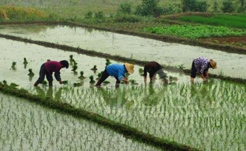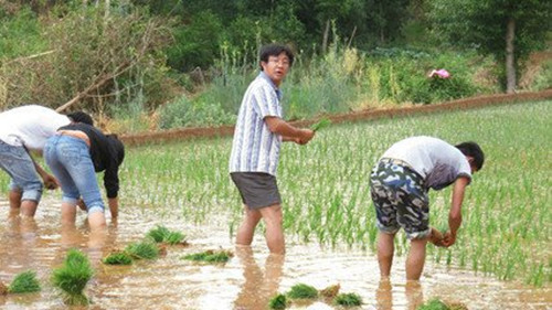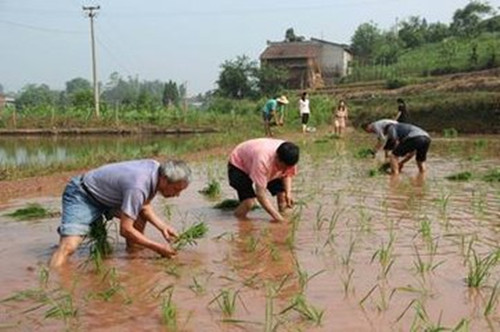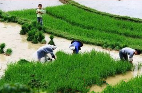 立夏前后是农村一年中最忙碌的时节,收管种一样都不能落下。栽秧,就是收管种忙碌活儿中之一。每次栽秧都得提前十来天往田里收水,水收好了,搅田边,田边一定要搅好,不然就蓄不住水(我们这儿叫不住漏,就是要漏水)。还要把田反复犁几遍,再把犁胚耙平。而到栽秧的时候,一切繁忙都归于一片笑声中,农村有一句话——"栽秧唱酒,打谷子吃饭"。它告诉我们在一起劳动,才会更有乐趣。