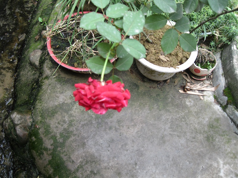 还有是枝,我家的月季很矮,枝业很细。但他不怕风,不怕雨。一直站在盆子里。它的枝里面是空的,这个我也不知道为什么是空的,但这种月季有着很强的生命力,它的枝不是很茂盛,但它能尽最大的能力,支撑起上面那朵有些沉重儿美丽的月季花。