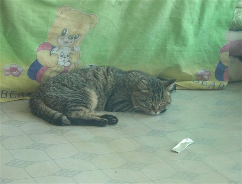 就在这时我家的柜子下有一些声音,我走过来爬下来看到猫在吃一些东西,我正看着突然毛发出了一些声音,好像告诉你不要过来,我想猫这种声音好像不让我过来,我还是走了好。 可是我越想越生气,是它吃了我的肉为什么是让我走开,我想了想,要玩一玩这个猫,我把一块猪皮系在一根绳子上面,我家猫看到了很快跑出来了。