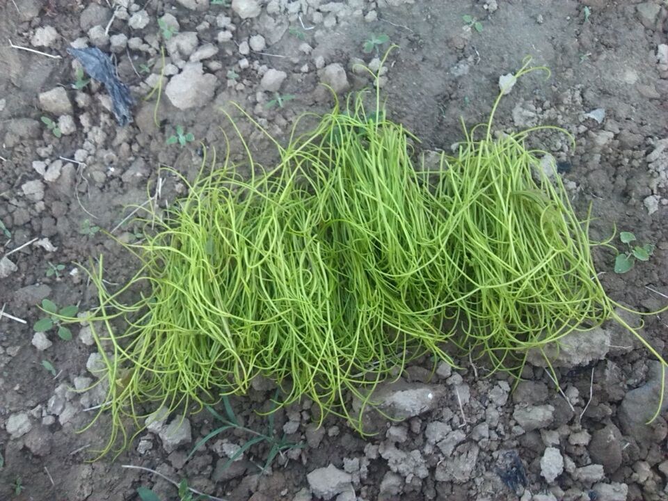 要说今天的收获,那就是这一人两大把的丝了,妈妈以前说掐丝的时候要把丝拿出去,以免产生细菌。看天色还早,我们又去了妈妈的那块地帮他了……