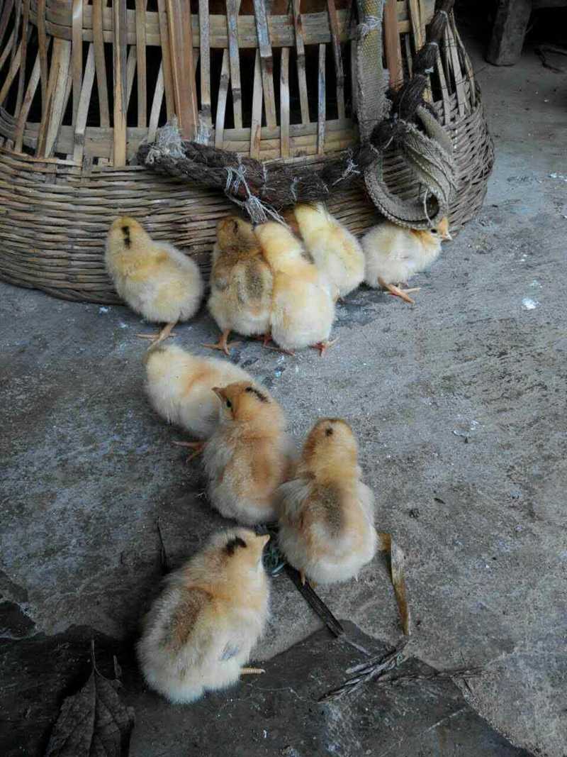 一身淡黄色的绒毛,一对只有拇指大的翅膀,还加上一张尖尖的小嘴,这就是我的小鸡。