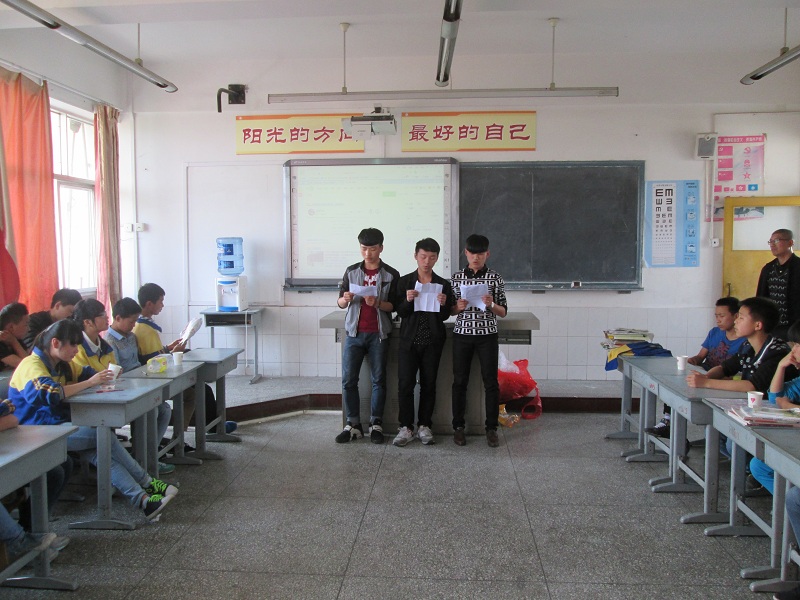 这是初中的最后一个学期了,学习非常的紧,但刘老师还是给了我们的机会,让我们举办了初中的最后一次班会。 为了把这次活动举办好,为我们的初中留下最美好的回忆,大家做了充分的准备。 这次的活动分学习小组参加,刘老师给我们提了一个要求,就是每个人都要有节目,不许只当观众。