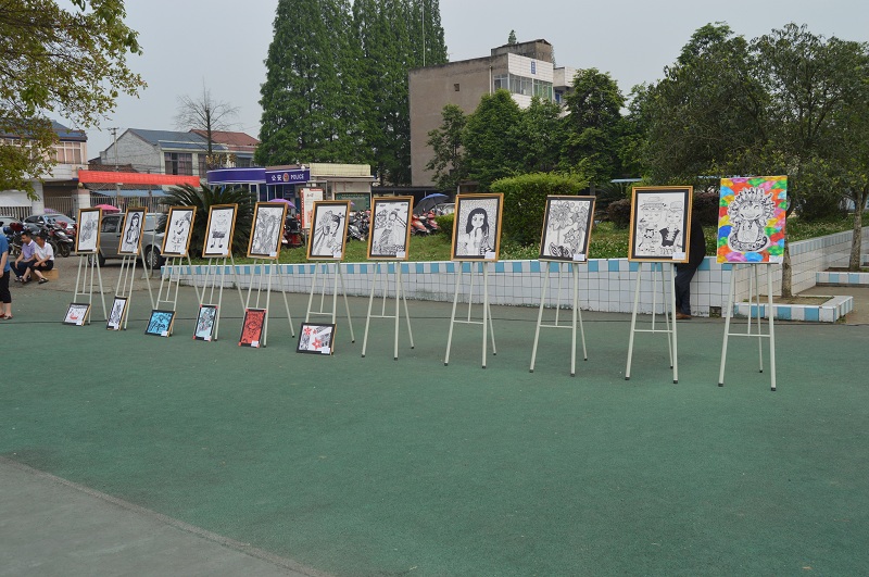 活动在上午进行,一大早,美术作品展就摆好了,各班也在自己的展区内展出了自己班上的美术、书法、手工等作品。 活动开始了,先是幼儿园的小朋友表演舞蹈,接着是同学们表演诗朗诵、大合唱、舞蹈,然后是蒲江职中的大哥哥大姐姐给我们献上的优美的舞蹈,最后是学校小学运动队的太极拳表演。每一个节目都精彩,每一个节目都赢得了热烈的掌声。