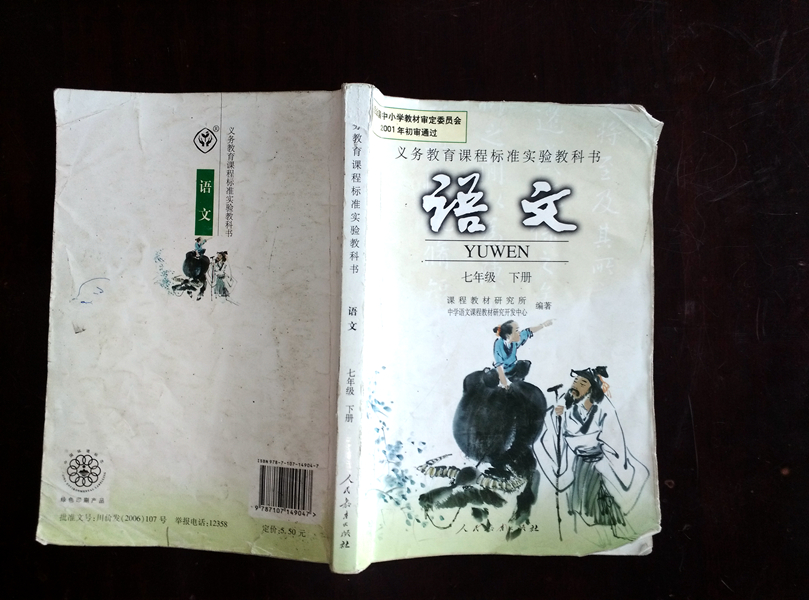 从小读书,语文都是必须学习的科目,所以凡是读书的都有语文书,我也不例外。我读七年级了,我有一本七年级下册语文书,我们所有的课本包括这本语文书在内,都是国家免费提供给我们的,我特别珍惜它。
