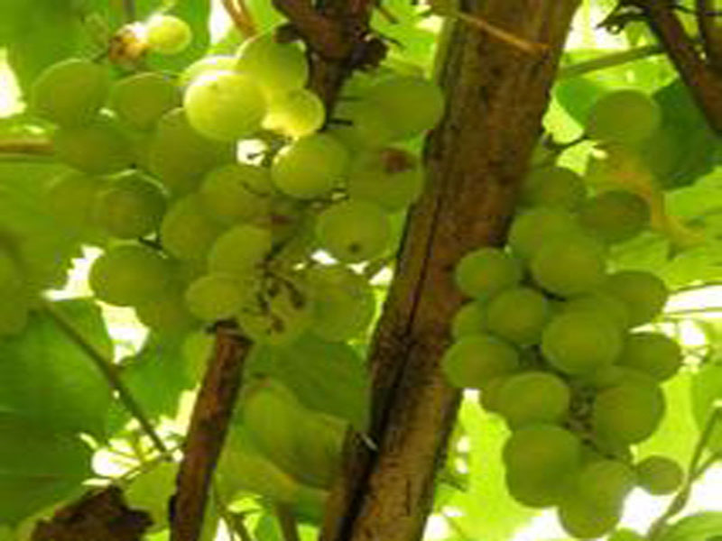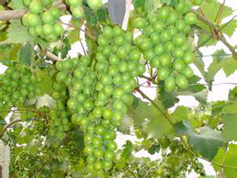 水果多种多样,有黄色的鸭梨,红通通的苹果,有粉红色的桃子……但我最喜欢的就是绿色的葡萄了。它的茎细而长,绿色的茎上面还有许多叉口。葡萄一串一串的挂在叉口上。葡萄挨挨挤挤的,像珍珠一样