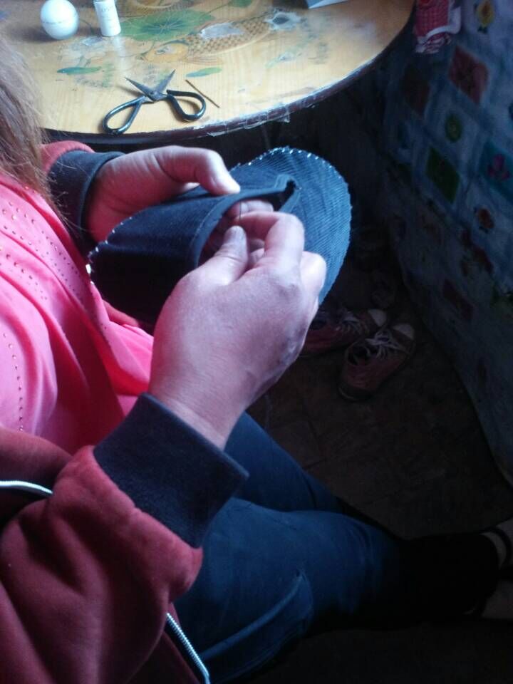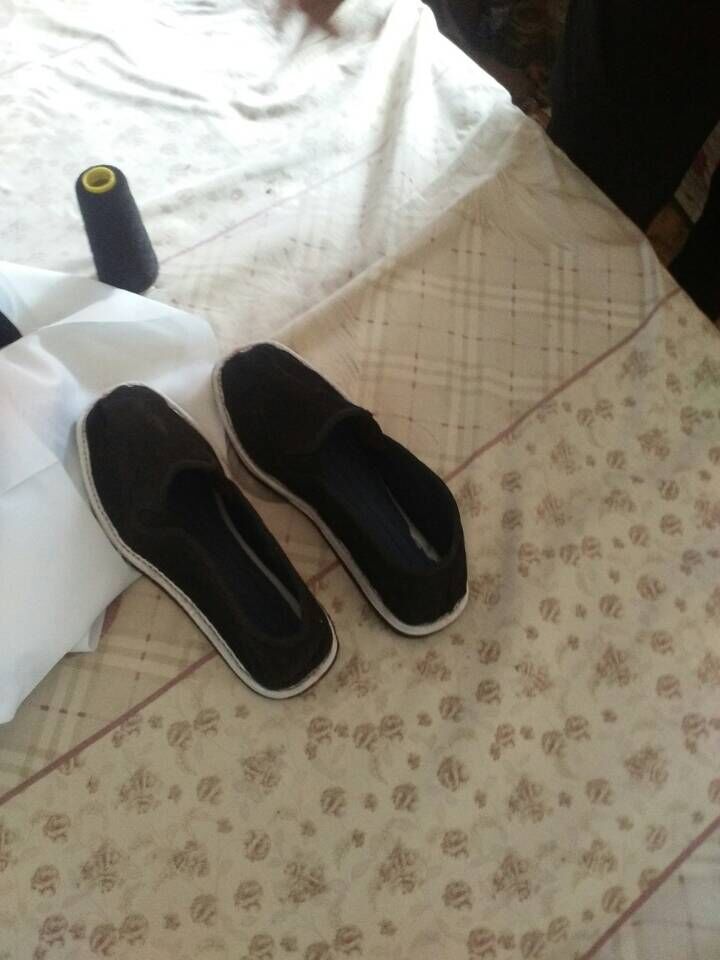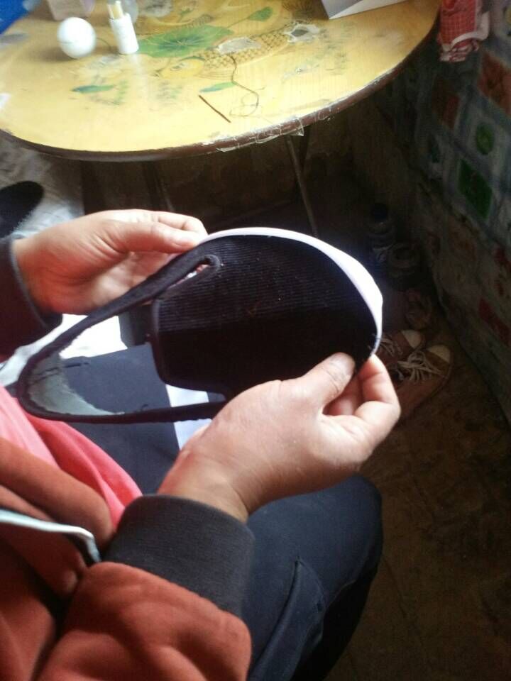 妈妈做鞋时非常认真,总是看看有没有做走样。做好后,拿到街上绱好,就高兴的把鞋给我,我也就高高兴兴的穿到学校里去。
