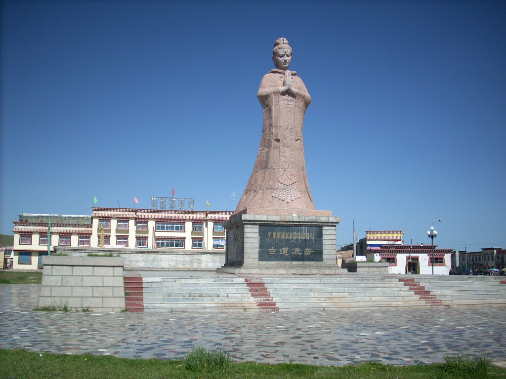 我们在7月16日到达了西宁,17日,我早早地起床,做好充分的准备,7点半,我们上了汽车,坐在汽车上,看了一路的风景,有许多风景是我们宁夏人难以见到的。大约行驶了一个小时,汽车停下来了,说到了日月山,我下了车,看到了这高立的文成公主入藏雕像,文成公主真不愧为女中豪杰,为汉藏两族人民的友好作出了重要贡献。
