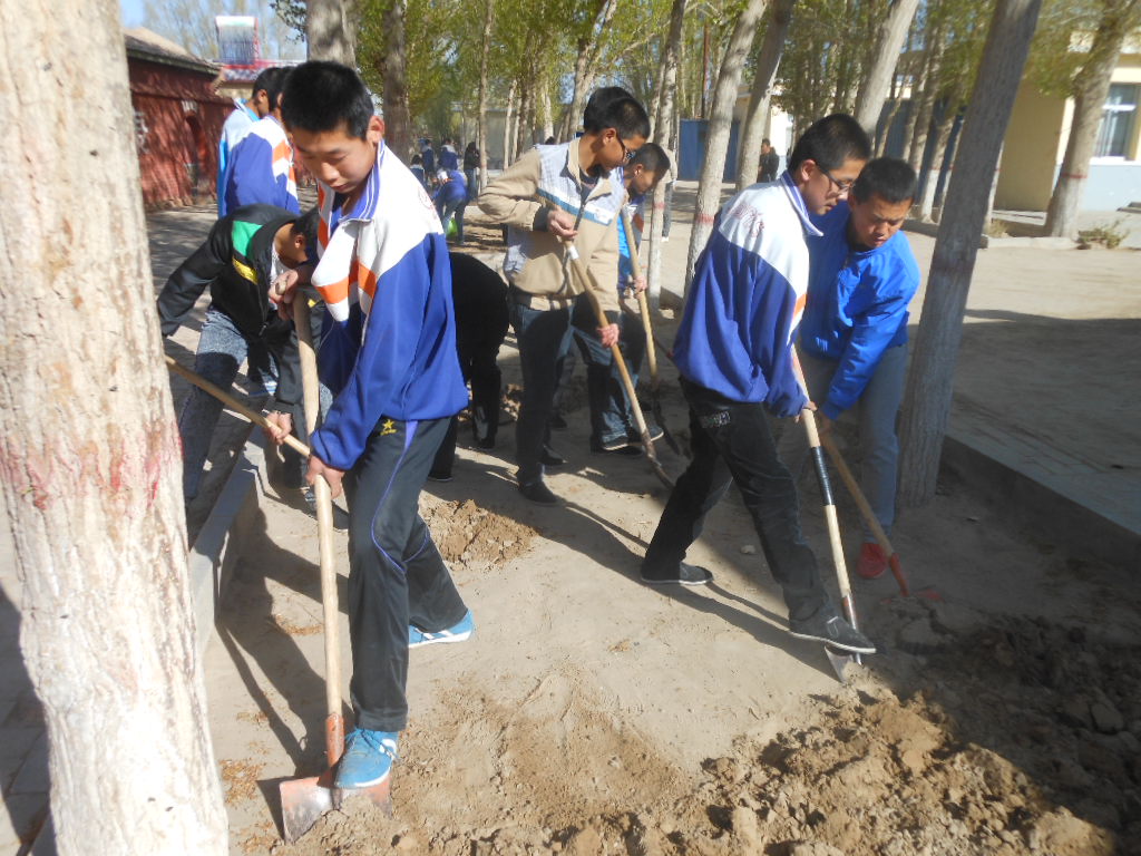 种花的第一步工作是翻地。翻地可是累活儿,但同学们没有一个叫苦的干的可起劲儿了,很多人都比起赛来了,不一会儿功夫,地就全翻完了。接下来开始耙地、开沟、撒种子、埋沙。我们觉得很辛苦,但也觉得很值得。