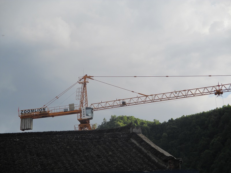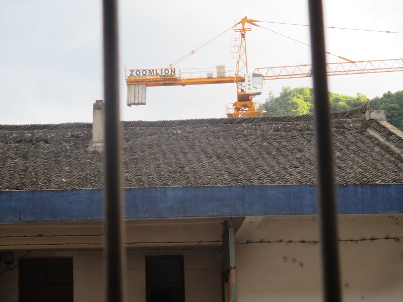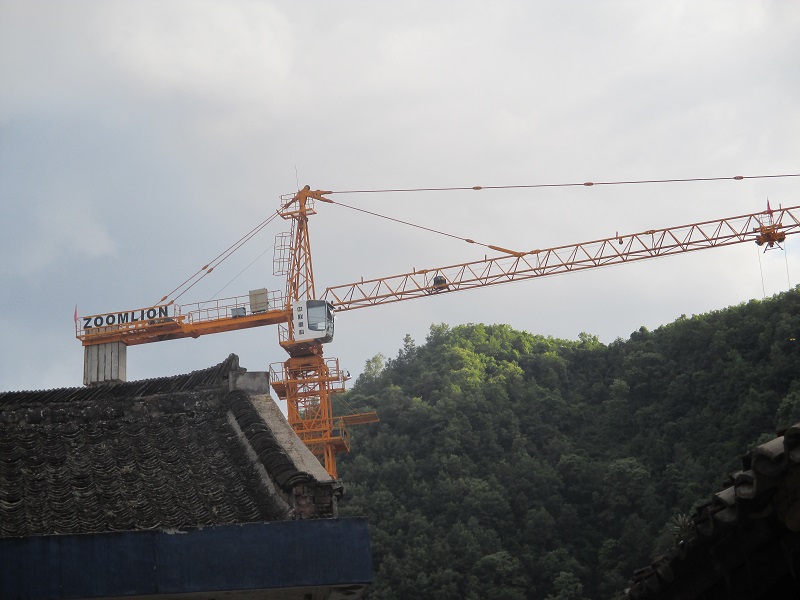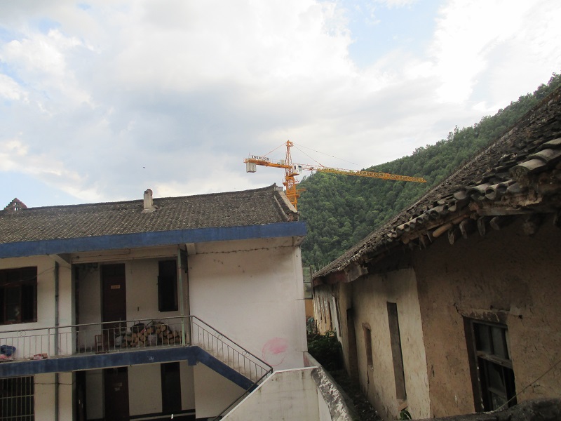 塔吊一只脚深深地插入地中,听说有110级云梯直通顶上驾驭室,很高,此作用可以防止塔吊翻倒,又可增高高度?十塔吊更有作用。 塔吊能进入蔡玉窑,说明经济在发展,我相信,社会会越来越发达。