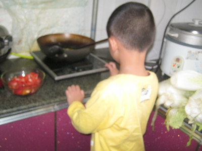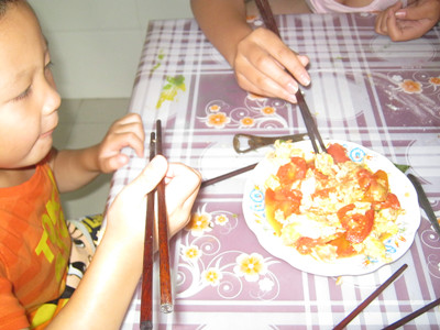 有一次,妈妈蒸好了饭,就被一位阿姨给接走了。我等了将近十分钟,妈妈也没有回家。顿时,我的脑海中浮现了这样的想法:不如自己动手做饭。妈妈以前总是说:"你现在还小呢,等长大了再做吧。"现在终于有机会了,说罢,我马上去洗手,洗完,想了想要做什么菜。 过了一会儿,我从冰箱里拿出两个西红柿,拿起刀切成块儿,刚开始拿不动刀,后来熟练了。切完西红柿,然后再从冰箱里拿六颗鸡蛋,拿上一个大碗把鸡蛋从碗边碰一下,打入碗中,用筷子搅一搅。