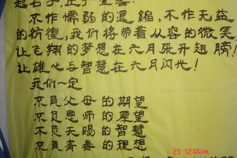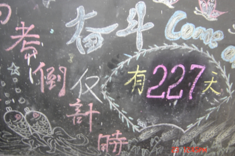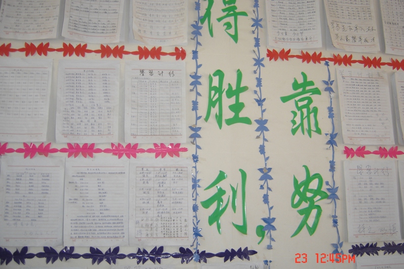 每当遇到一个不知道或不会的问题,同学们就会互相帮助,互相学习,直到把问题弄清楚为止,如果实在是不会同学们就会主动向老师请教,老师就会来到教室中把我们不知道的问题一一讲明白 ,现在的我们由于快临近高考,所以班中布置的非常特殊,在学习园地中都有同学们亲手写的学习计划,贴在后面的墙上,同学们每天都会看到自己写的学习计划而督促自己加油学习,在班中有高考倒计时,每天早晨我进教室就会看到悬挂在那的倒计时牌,心里就非常紧张,还有在墙的左右边都有督促同学们每天努力进取的警牌,每天就好像有一百双眼睛在订着我们,督促我们努力学习。