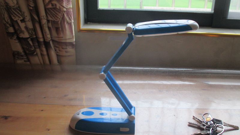 这个小台灯是广东久量光电有限公司生产的,整个小台灯的外壳是由蓝色和魄的塑料制成的。这个台灯有个底座,是用来防止灯倒下去,底座上还有“DP久量”的字样。底座一侧上有个开关,开关是乳白色的,有“关闭”、“一档”、“二档”;另一侧则是充电口了,充电口旁还有个充电指示灯,每当充完电后,指示灯就会自动熄灭。