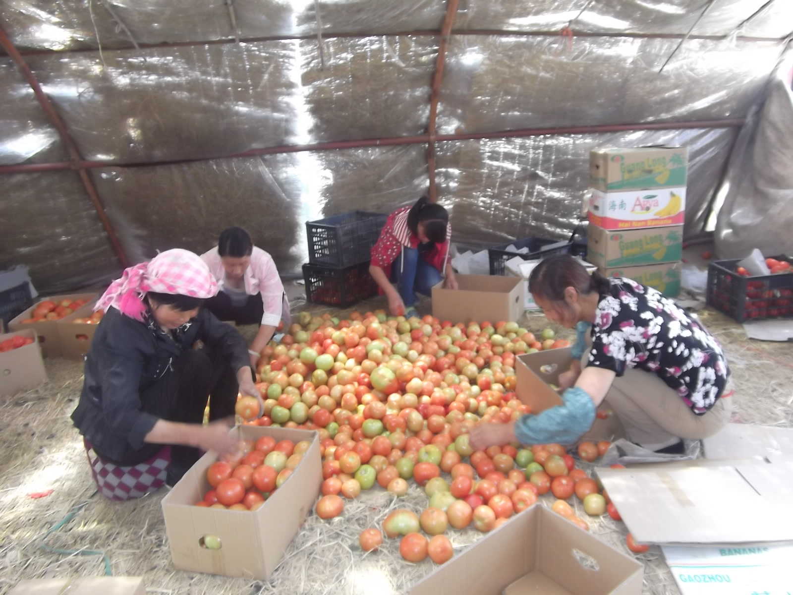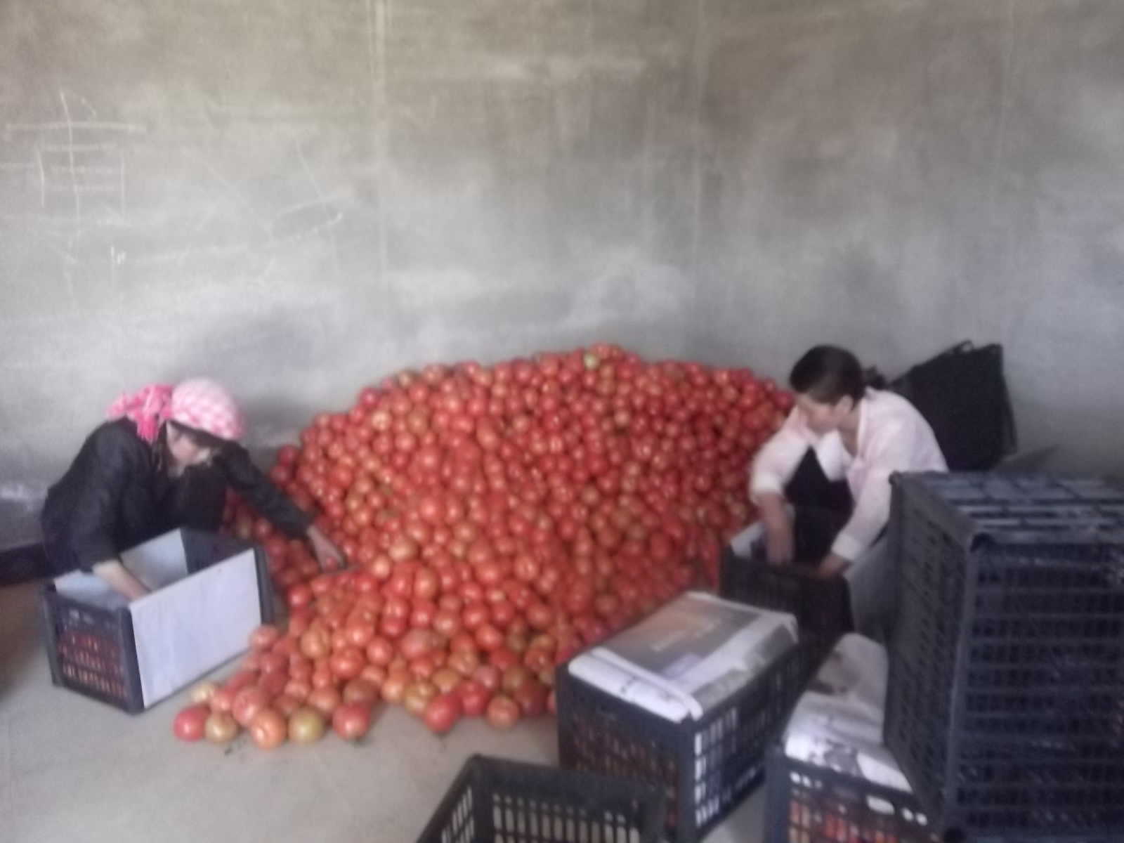 看!西红柿被人们整整齐齐的装在箱子里,运上货车,西红柿是这里的土特产,它是人们经济的来源。