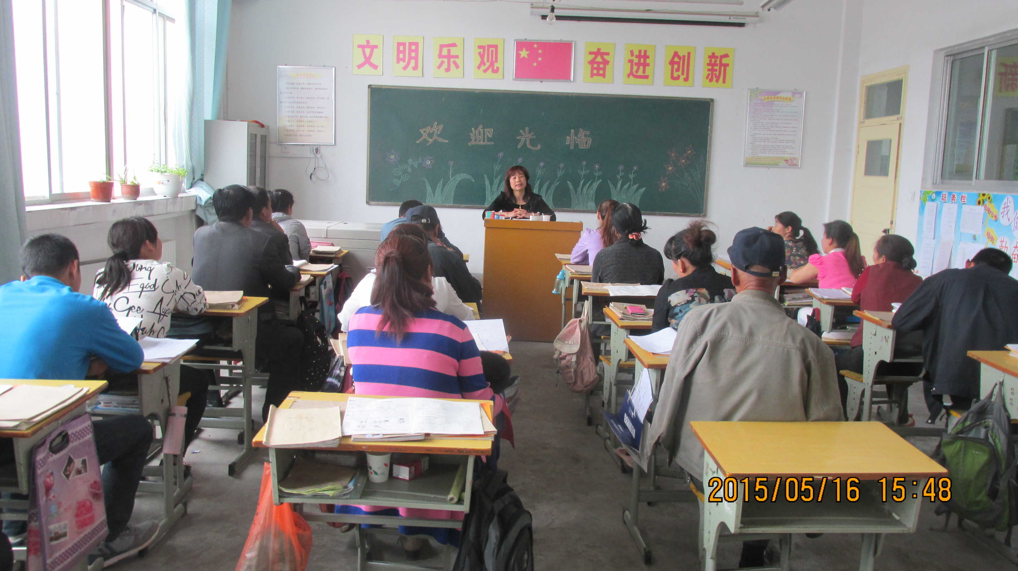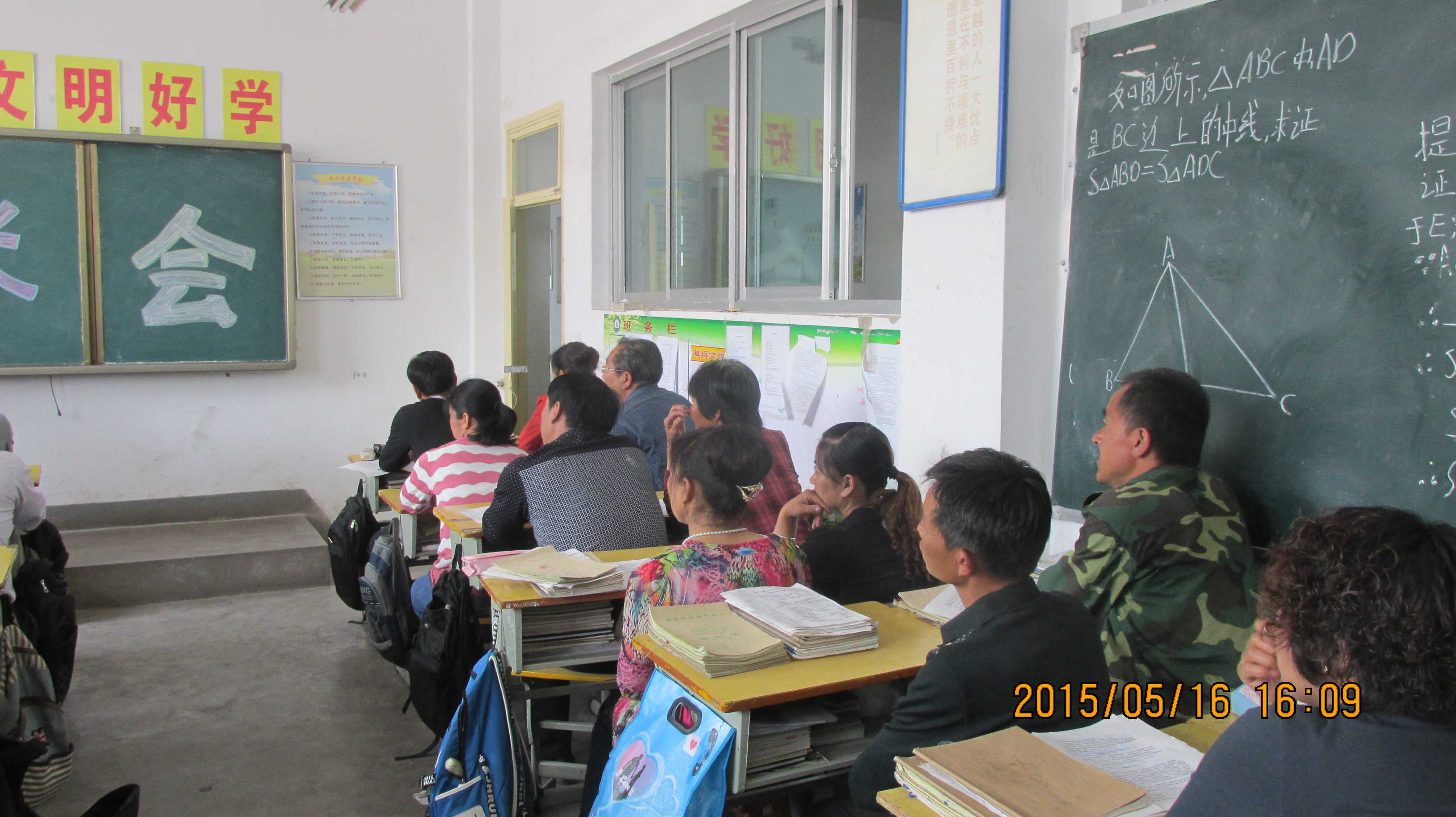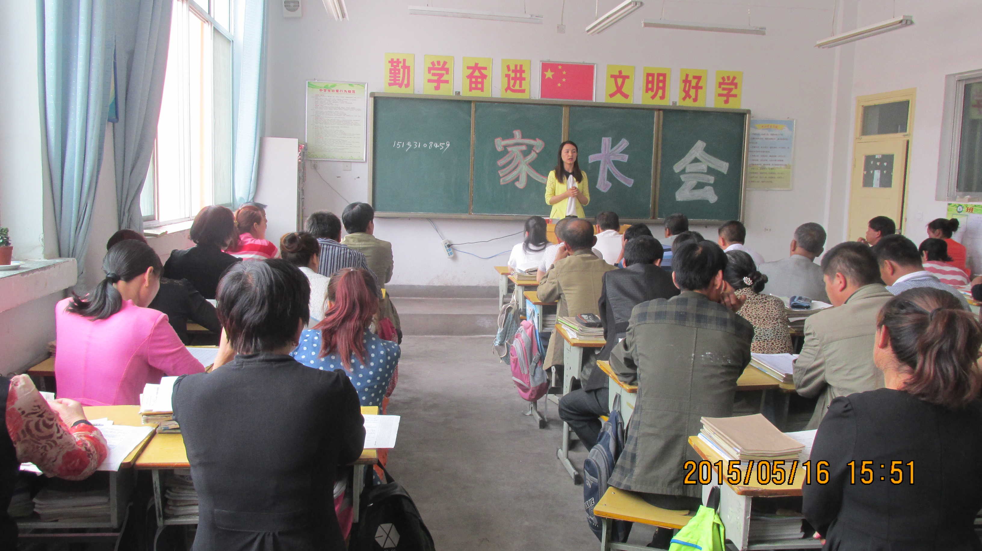 下午两点半的时候家长会准时开始了,同学们的家长都坐在同学们自己的课桌上,课桌上摆着同学们的作业本还有各科的试卷。