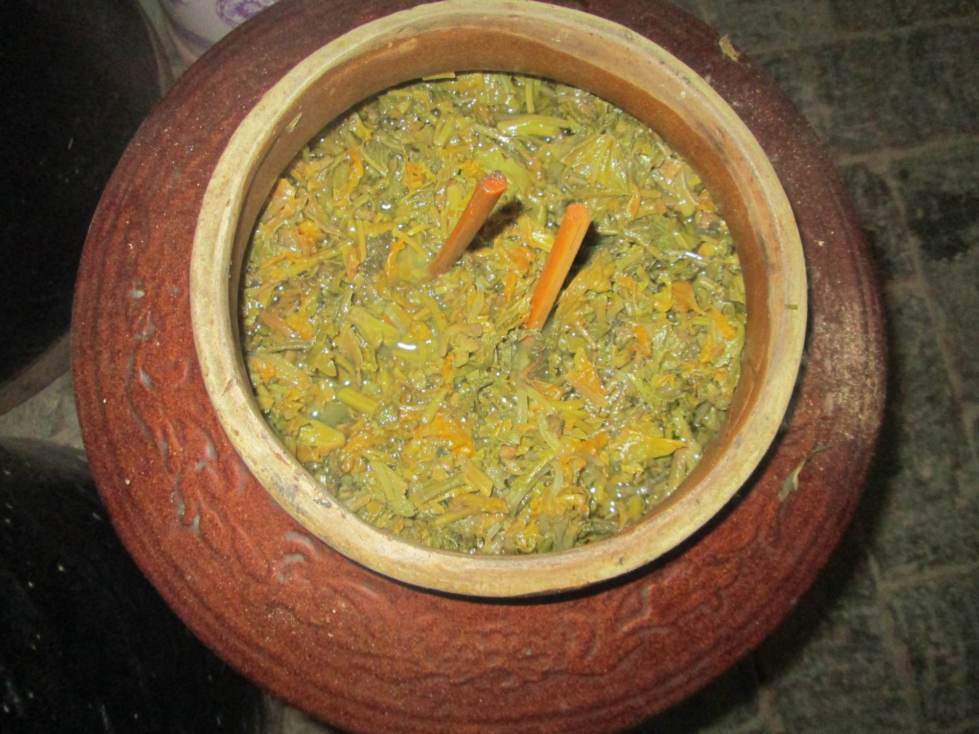每当初夏,人们就开始做浆水了。先把白菜放到阴凉的地方,等到白菜发黄时,第一步就好了。然后把白菜洗干净,切碎,放到锅里煮几分钟,把白菜和汤一起放进陶制的坛子里,在太阳下晒上几个小时,等到变酸了,浆水也就做好了。