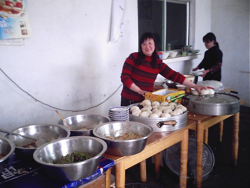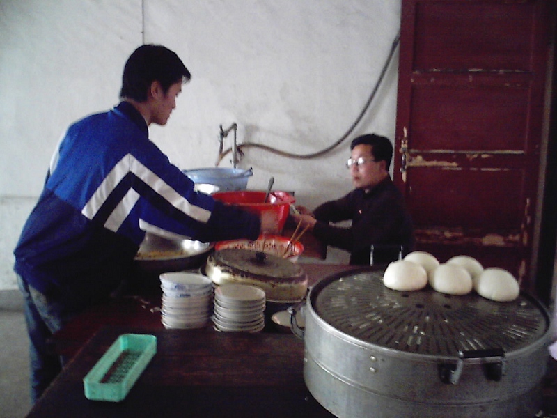 经过多次在学生中的调查,发现5号灶卫生工作做得最好,得到了学校的表扬。灶上一天提供3次伙食,第一次是上午8:00,下早读后,供应早点,主要有包子,菜夹馍。 我们农村学生吃饭不讲究,吃饱为原则。所以大多数学生早点吃的都是烧饼夹菜,并且感到很满足了。