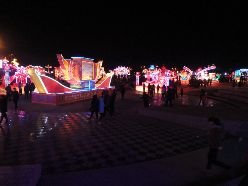 吃完汤圆后,我们一起去广场看花灯,花灯各种各样,有冰雕、“飞马”、庆祝2015年的……花灯一闪一闪的,非常美丽。我们本打算在哪里看放花炮,但也没有放,不知道怎么回事,不过我还是非常喜欢这个元宵节。