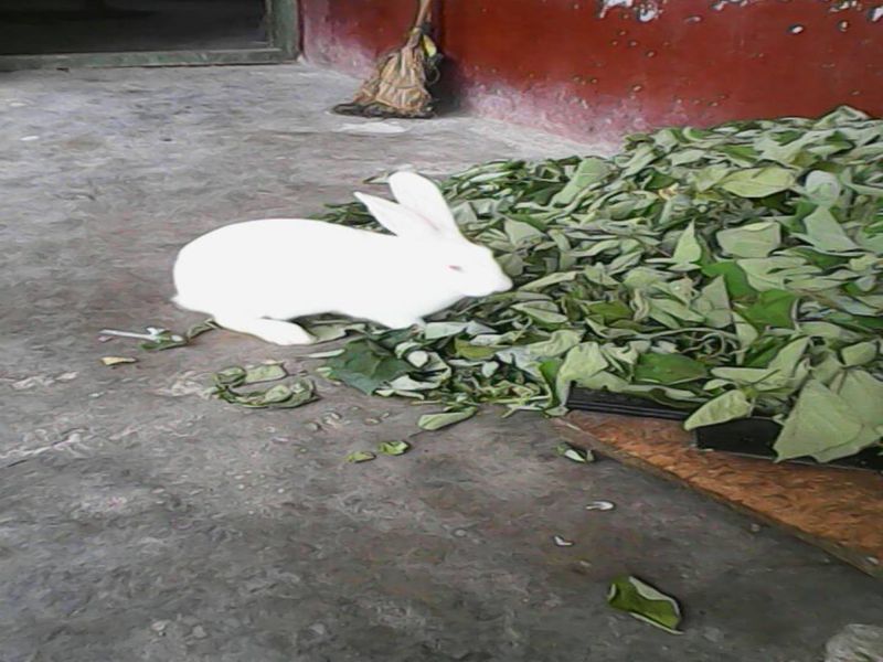 小白兔最喜欢吃萝卜和青菜。它们吃起胡萝卜来用两颗大门牙"咔嚓、咔嚓"地咬着,吃得津津有味。记得有一次,我从地里采了一大把胡萝卜准备喂它,它早已按耐不住,咕咕地叫起来,好像在说:"我饿了,我饿了,赶快喂我吃。"我把胡萝卜扔进笼子里,一会儿就被它吃了个精光。