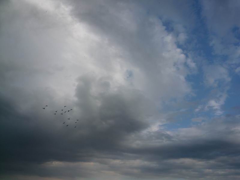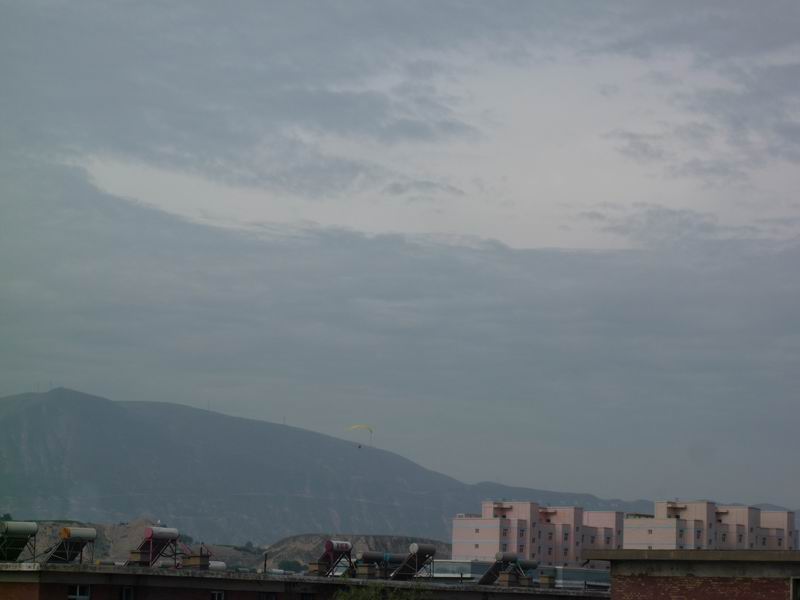到了下午,天气还是很热,但谢天谢地,总算是起风了。过了一会儿,风就大起来了,吹得尘土乱飞、吹得柳枝乱晃。我高兴的跑出去,享受这得来不易的珍贵的凉风。看天上,好似谁不小心打翻了墨水瓶,乌云迅速的笼罩了半边天。