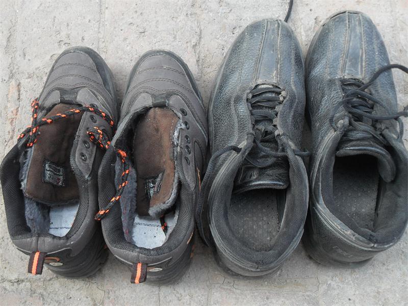 这双鞋的外面画着世界文物遗产,这写着郭沫若说的名言:"既异想天开,又实事求是,这是科学工作者特有的风格,让我们在无穷的宇宙长河中去探索无穷的真理吧。"这双鞋有八个轮胎,一只鞋上有四个小轮胎,两边各两个。鞋的后面还有一个推进器。