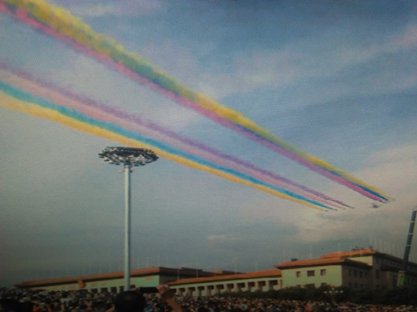 忘不了那天的阅兵仪式。国歌声中红旗飘扬,三军部队气势雄伟,习主席挥手检阅部队,空中飞机喷着吉祥的彩烟,上万只彩色气球,上万只和平鸽,飞满天空。让世界看看如今的中国吧,人民团结一心,勤劳勇敢,科技高度发达,国防,军事实现了科学技术现代化。