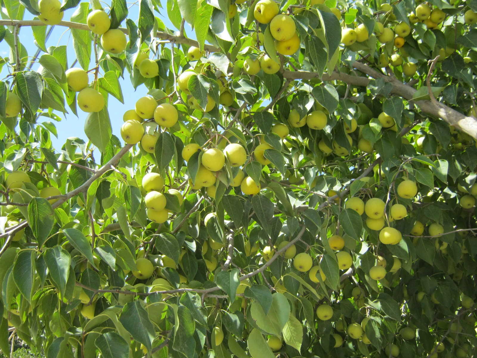 秋天到了,我们家乡的水果又成熟了。一棵棵梨树真美啊!梨树树上的梨子黄澄澄的,像一个个黄灯笼挂在树枝上,有的梨子吊在树上,有的梨子坐在树枝上,真是可爱极了!