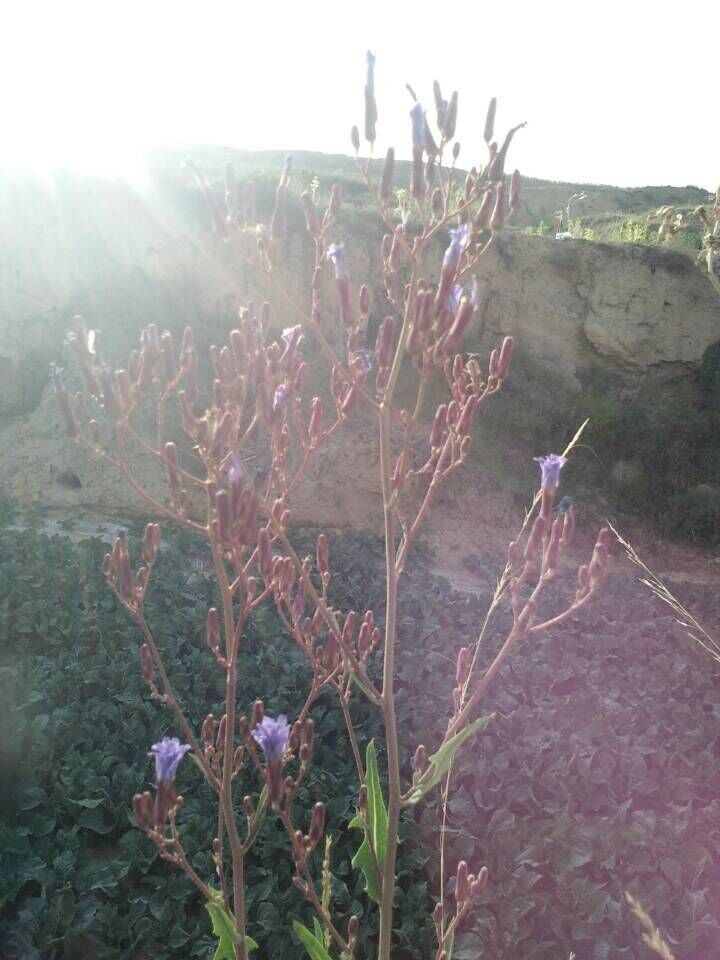 它长得并不美丽,幼年苦曲可以食用,成年苦曲全身都有着锯齿状的叶子,主干却也细的可怜,我唯一觉得美丽的,仅仅是它头上冒出的几朵微乎其微的紫色花儿,仔细观察,你会发现,每一分干上它仅仅只有一朵,而且也许久不见花瓣绽放,每一朵花儿都是一颗星,在干裂的土地上星星点点的挥发光芒。它的含蓄,也许,才更可怕。