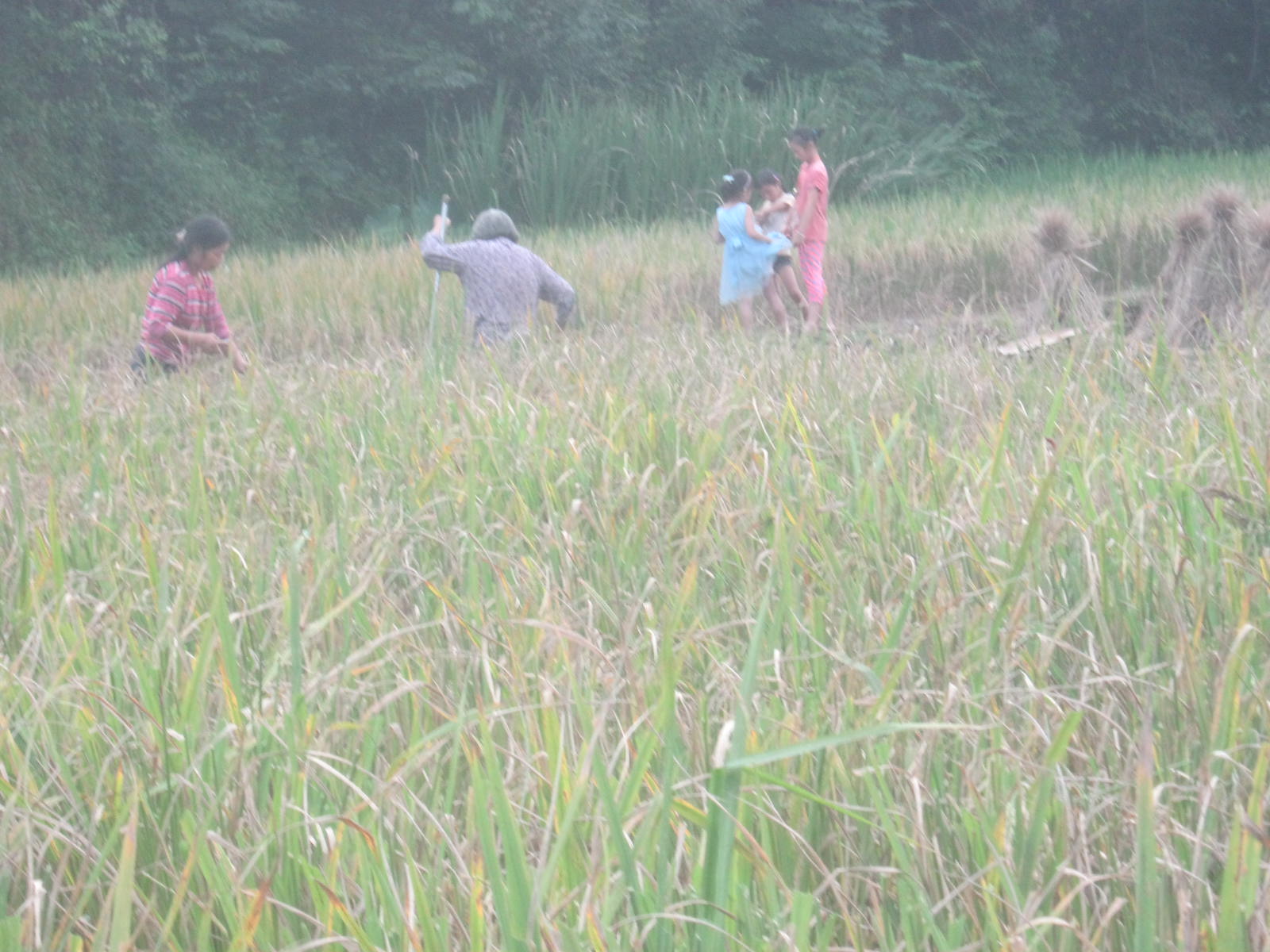 秋天悄悄地来了,将金黄色的光芒撒向稻田,光亮一下子照亮了人们的心,农民伯伯们便拿着镰刀,背起背篓奔向了田间。周五,一个多么美好的日子,放学后我很快向家中奔去。路过我家稻田时我现刚做完手术的奶奶正在田里割着谷穗儿。此时我的心里真不是滋味儿,眼圈一下子红了。于是,我放下书包,飞奔向奶奶身旁,溅起的水花落在奶奶的额头上,她回过头来,我一下子抱住了奶奶,我让她休息一会儿,可奶奶没有同意。