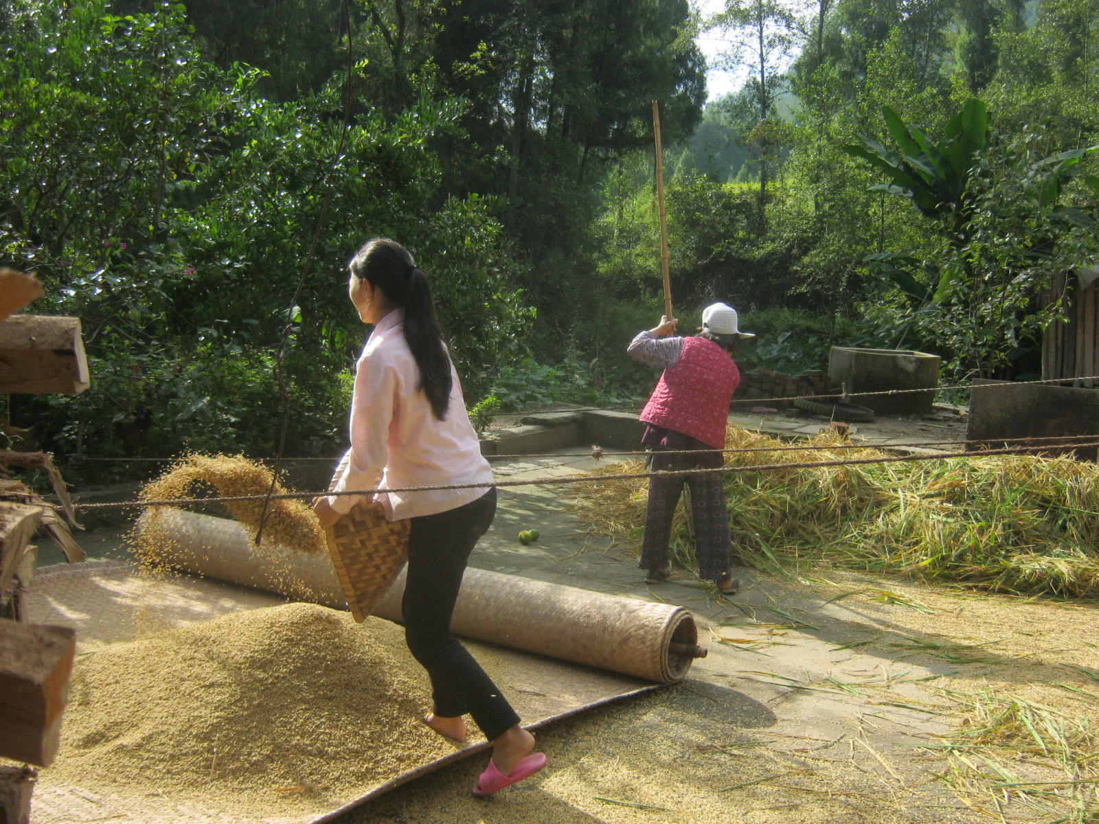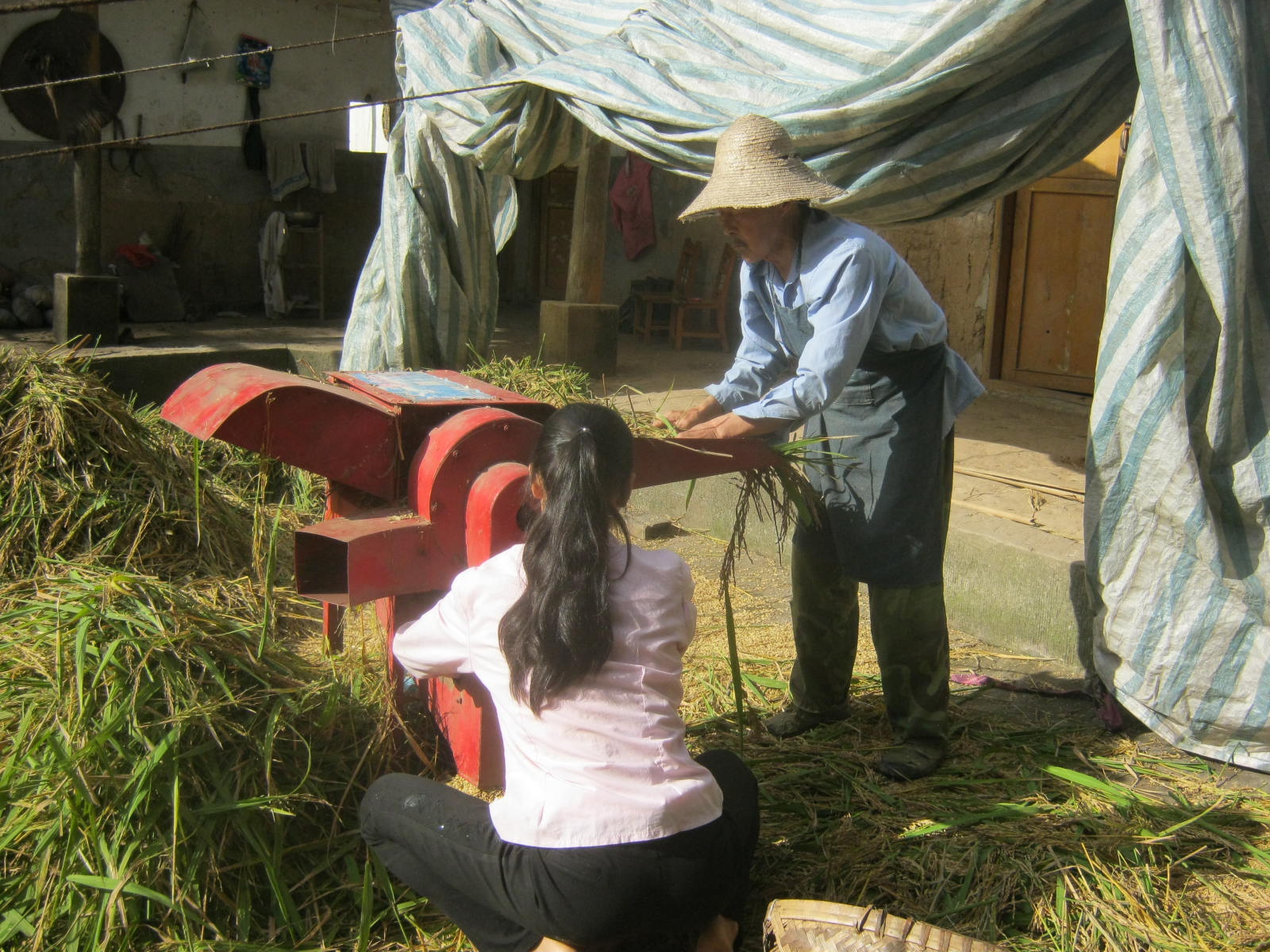 天空中鸟儿已开始飞上了归途,我们也满载而归。一天的时间就这样结束了。第二天的首要任务便是把那堆谷穗用脱粒机脱出来。我们分工更为明确。爷爷负责向机子中倒谷穗,我负责接谷粒,奶奶负责清理稻草。清理稻草得讲究方法,先用一种工具把稻草放到一边,再把其中的谷粒和草分开。我这边更是忙得不可开交,我一边帮爷爷把谷穗抱到木板上,还一边去倒谷粒......