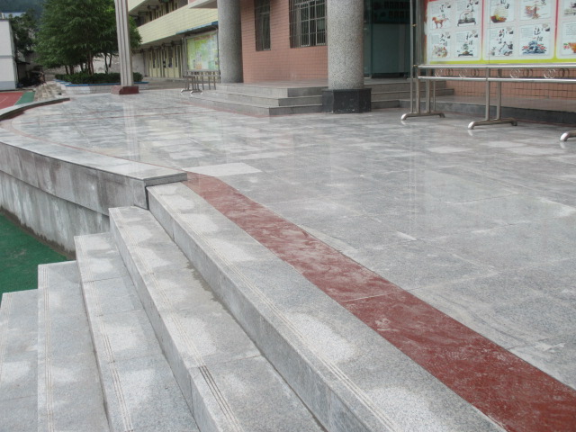 走上台阶,大理石的坚硬让我们信心百倍。淡淡的色彩,点点花纹,几万年的石质,都使得大理石成为人们装修的首选。再加上各种颜色的搭配,人走在上面就像春节晚会的镂空玻璃地板的气派。但是这上面有了不少的灰尘脚印,还有边缘的破损,还是希望同学们平时多多爱护。