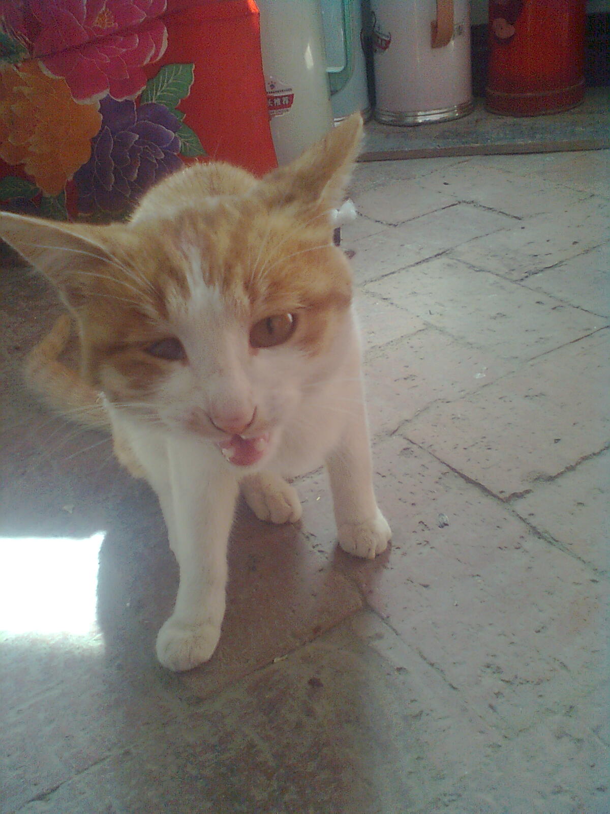 小猫还很贪玩,它的最爱就是毛线团。它会把毛线团滚过来滚过去,还不时的去扑咬,就像抓老鼠似得。为此我还特地为它做了一个球,把小球用毛线拴住,让它来扑咬逗它玩,它跳上跳下的怎么也抓不住,气的它喵喵大叫起来。突然它一下子扑向我,在我的手上留下了一个"永久的记号",然后转身就跑了,看那样子好像在说"活该,让你拿我寻开心。"它有是还会玩失踪,一连好几天都不见它,急地我满屋子找它。可是过几天后,它又会满身脏兮兮的回来,在你的身边撒会娇。