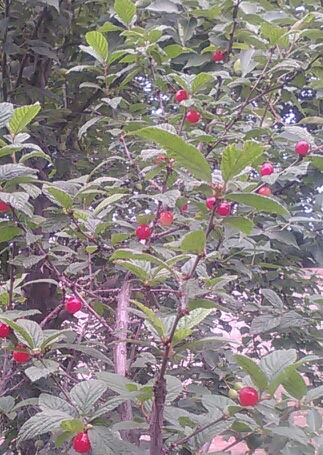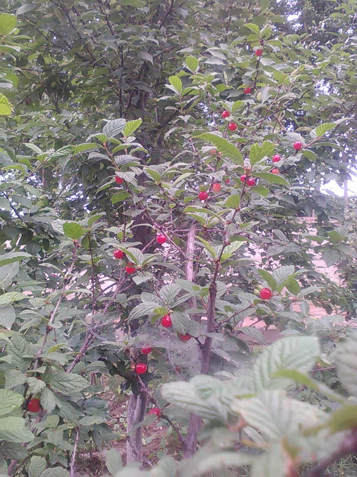 今年,这棵樱桃树不负重望,它长得极好。春季,当杏花开花时,它也开出了那小小的粉粉的花,花儿繁多,花团锦簇,花期也长,不像杏花,开不了多长时间就凋谢了。当花儿落了的时候,就有小小的宛如扁豆一般大小的青色的小樱桃。看到树上挂满了这樱桃,我别提有多高兴了,又过了好多天,到了夏季,青青的小樱桃逐渐变成了红红的"小灯笼",我看了口水直流,迫不及待的就想摘一个尝尝,可是奶奶说这樱桃还没有成熟,不能吃。我就一直忍着,忍着。有一次,我看着那红红的樱桃,忍不住偷偷地摘了几颗放在嘴里。哇!有点甜,又有点艰涩。我不禁想:未成熟的樱桃可真不好吃。又过了十天半个月的,奶奶终于说樱桃熟了可以吃了。我迫不及待的拿了个碟子,摘了满满的一碟子,放在桌子上,这时的樱桃看起来就像小红宝石一样,晶莹剔透,在阳光的照射下闪闪发光。