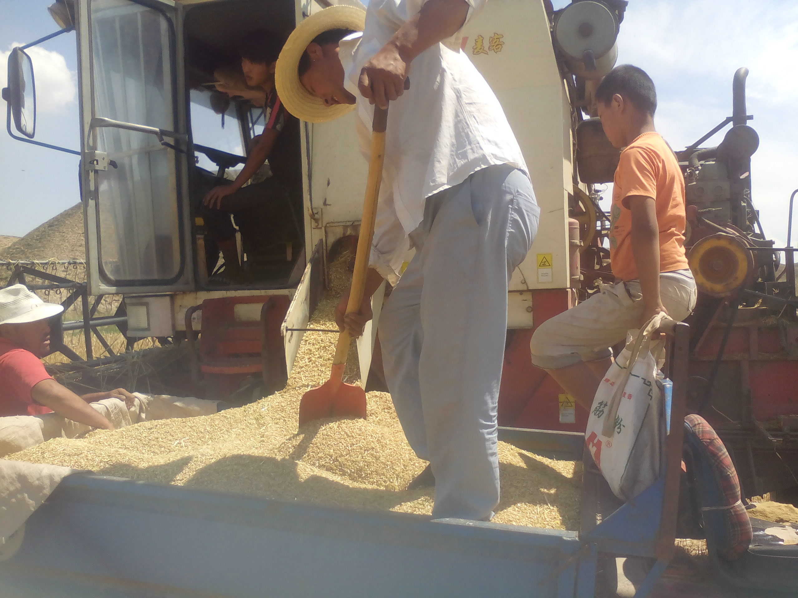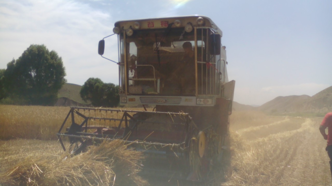 庞大的机器不一会儿就开进了地里,伴着阵阵轰鸣声,机器像一个好久没吃食物的怪兽,麦子一会儿就被割了不少。又过了一圈,这头怪兽就好像吃饱了似的,麦子全部从距离门很近的一个口中涌了出来,不过速度非常快,爸爸用兰驼车接,一边接一边向周围拨开。可就算这样,一车也还没完,里面还有麦在不停的涌出来,这个大怪兽,到底吃了多少东西。用这样的机器割麦子真是特別快,而且还很干净,受到了很多人的赞叹。
